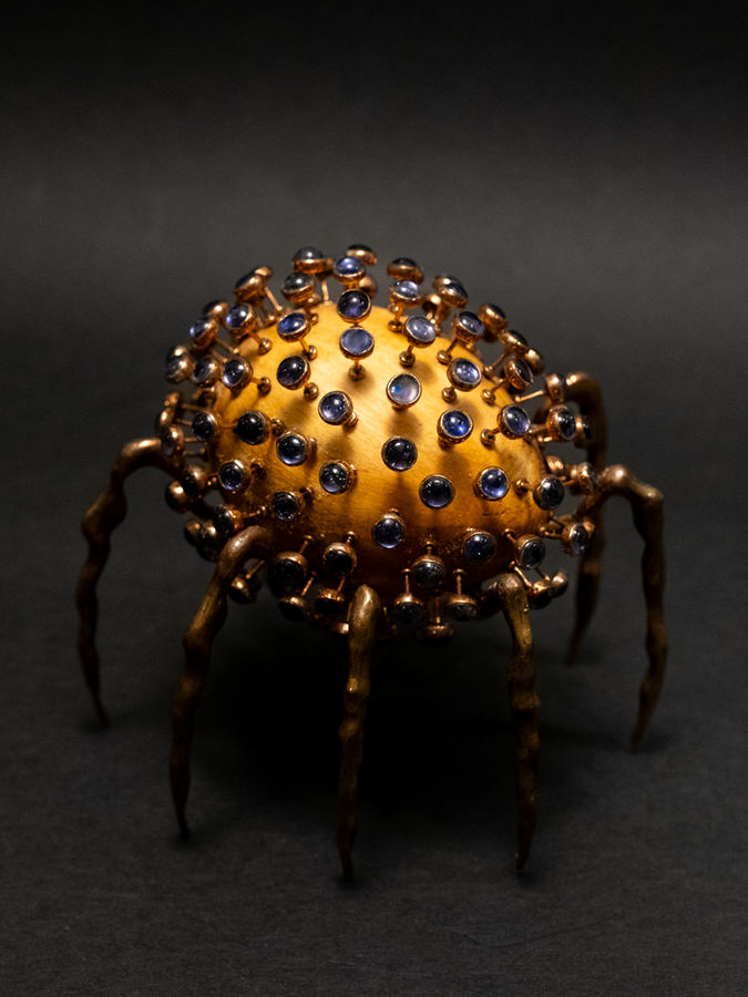 During the pandemic, like everyone else, he reevaluated his life and himself, creating the "Aliens" series, which he described as "mobile jewelry" and representing transformation. In the Aliens series, he used metals like silver, bronze, copper, semi-precious stones, minerals, and even fossils. During this process, he believes that he has contributed a new definition to the literature, calling it "jewelart", by combining his professional experience with his artistic accumulation.